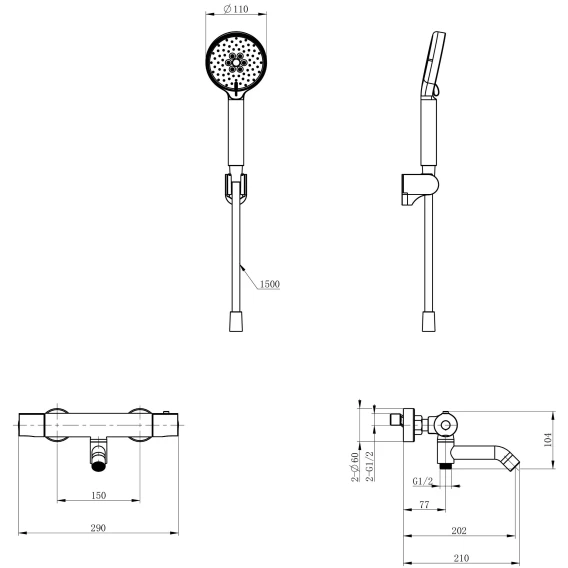 Аэратор, Металлическая розетка, Эксцентрики, Душевой шланг, Душевая лейка, Держатель для душевой лейки