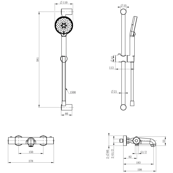 Аэратор, Металлическая розетка, Эксцентрики, Душевой шланг, Душевая лейка, Держатель для душевой лейки, Штанга душевая
