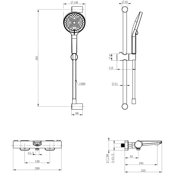 Аэратор, Металлическая розетка, Эксцентрики, Душевой шланг, Душевая лейка, Держатель для душевой лейки, Штанга душевая