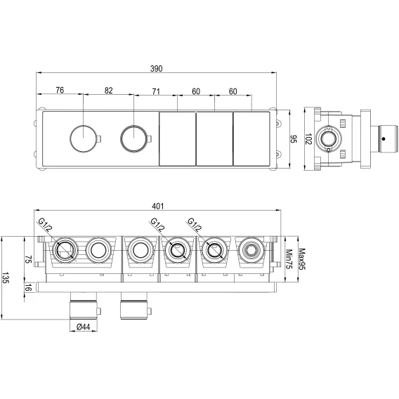 Термостат для ванны Wonzon & Woghand WW-INF163A-GM встраиваемый, темный графит матовый