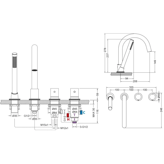 Крепление, Аэратор, Душевой шланг, Душевая лейка