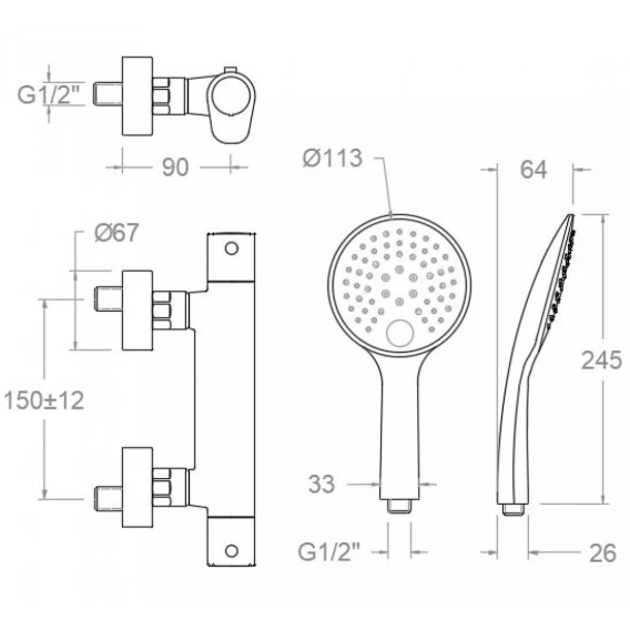 Металлическая розетка, Эксцентрики, Душевой шланг, Душевая лейка, Держатель для душевой лейки