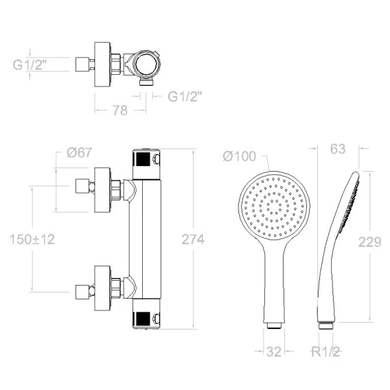 Металлическая розетка, Эксцентрики, Душевой шланг, Душевая лейка, Держатель для душевой лейки