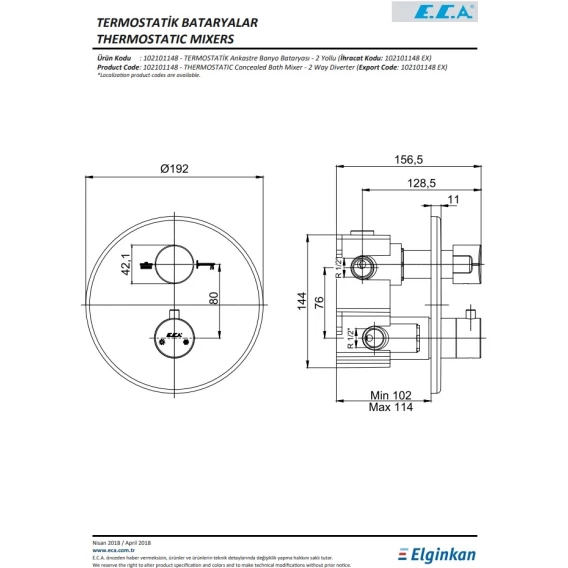 Термостат для ванны E.C.A Thermostatic 102101148EX