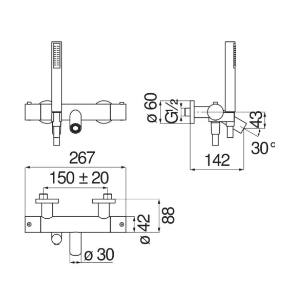 Аэратор, Металлическая розетка, Эксцентрики, Душевой шланг, Душевая лейка
