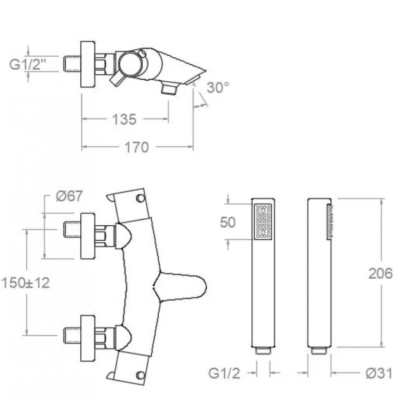 Металлическая розетка, Эксцентрики, Душевой шланг, Душевая лейка, Держатель для душевой лейки