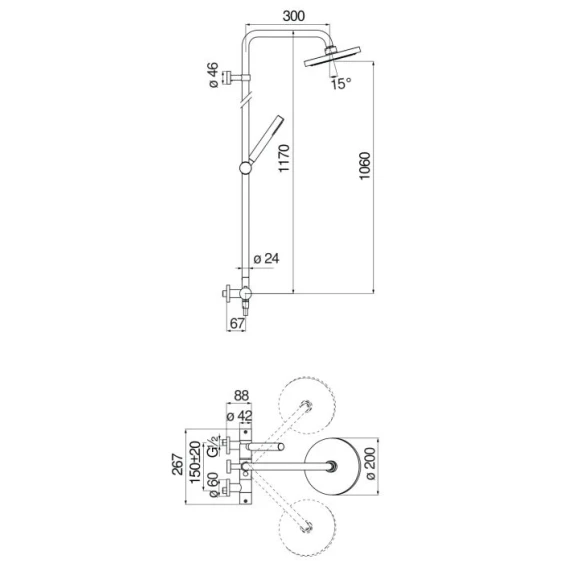 Металлическая розетка, Эксцентрики, Душевой шланг, Душевая лейка, Держатель для душевой лейки, Верхний душ, Кронштейн, Штанга душевая, Термостат