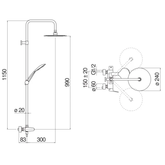 Душевая система 240 мм Nobili Blues BS101130/60CR