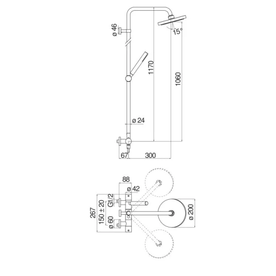 Металлическая розетка, Эксцентрики, Душевой шланг, Душевая лейка, Держатель для душевой лейки, Кронштейн, Штанга душевая, Термостат
