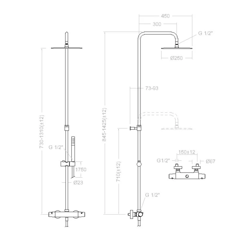 Металлическая розетка, Эксцентрики, Душевой шланг, Душевая лейка, Держатель для душевой лейки, Верхний душ, Кронштейн, Штанга душевая, Термостат