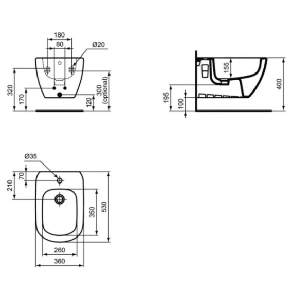Подвесное биде Ideal Standard Tesi T3552V1