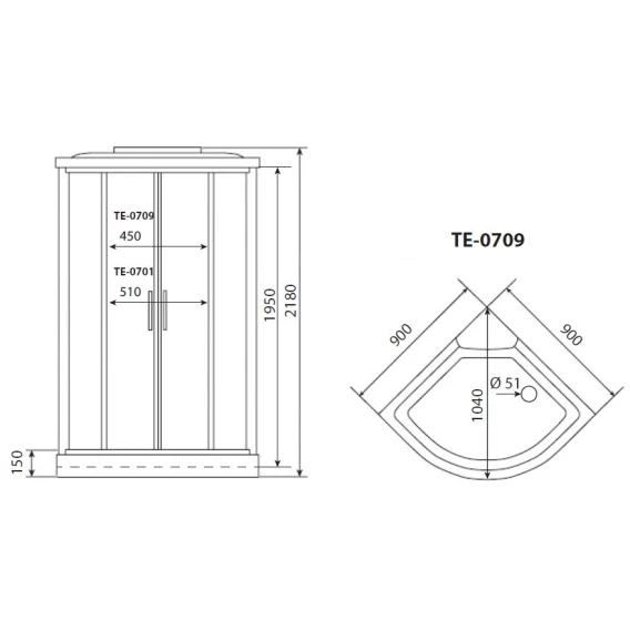 Душевая кабина 90x90x218 см Timo Eco TE-0709 P матовое