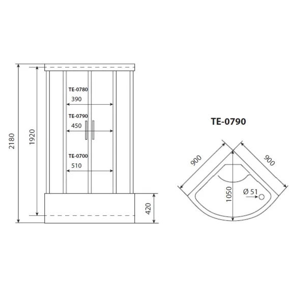 Душевой шланг, Душевая лейка, Держатель для душевой лейки, Подключение для душевого шланга, Полочка, Ручки, Верхний душ, Металлический каркас, Сиденье, Сифон, Штанга душевая, Ножки, Зеркало