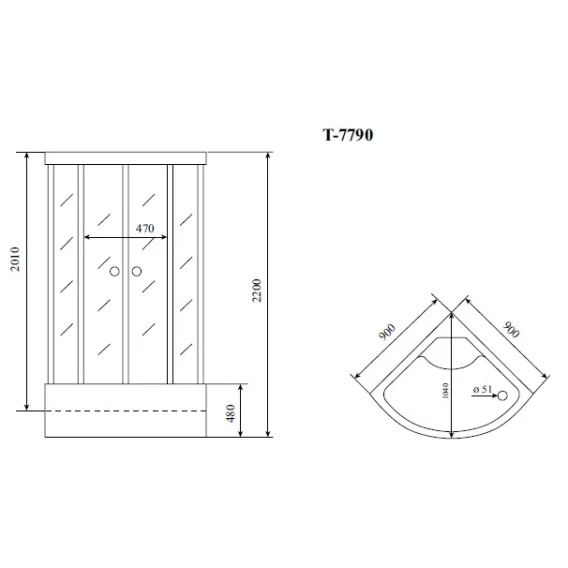 Душевая кабина 90x90x220 см Timo Lux T-7790 P прозрачное