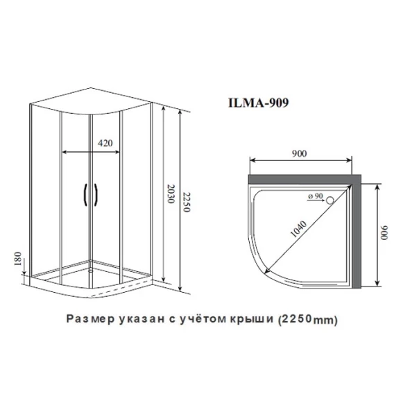 Душевая кабина 90x90x222 см Timo Ilma ILMA-909 прозрачное