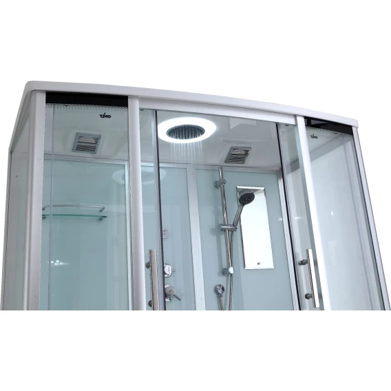 Душевой шланг, Душевая лейка, Держатель для душевой лейки, Подключение для душевого шланга, Полочка, Ручки, Верхний душ, Металлический каркас, Подголовник, Излив, Слив-перелив, Штанга душевая, Ножки, Зеркало