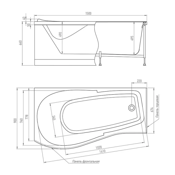 Акриловая ванна 170x75 см Vayer Savero GL000009148