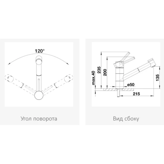 • Вращающийся на 360⁰ излив увеличивает функциональность