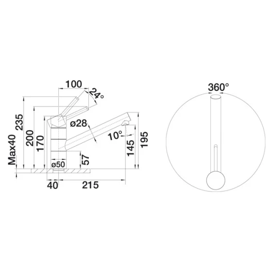 • Вращающийся на 360⁰ излив увеличивает функциональность