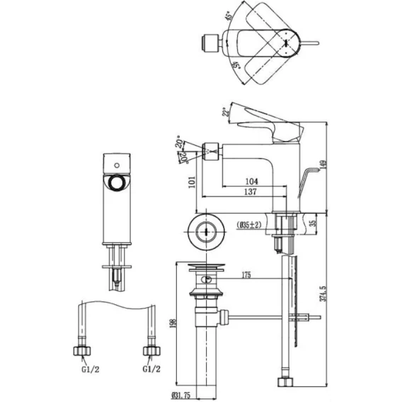 Крепление, Аэратор, Гибкая подводка, Донный клапан