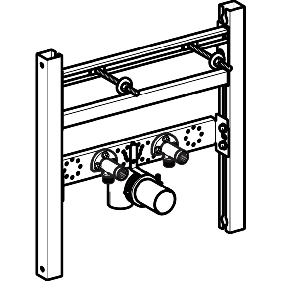 Характеристики Help IconsСамонесущая оцинкованная pамаРама с отверстиями ø 9 мм для крепления в деревянном каркасеРасстояние между точками крепления умывальника 5–38 смРегулируемое по высоте и шумопоглощающее крепление для соединительного коленаМонтажная планка выставляется по высоте и глубинеСамоклеящаяся уплотнительная прокладка с флисовым покрытиемЗащитная заглушка для однократной проверки давления холодной водой макс. 15 бар/1500 кПа