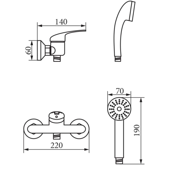 Металлическая розетка, Эксцентрики, Душевой шланг, Душевая лейка, Держатель для душевой лейки