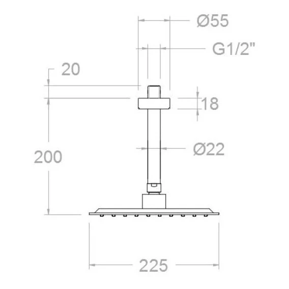 Диаметр верхнего душа 22.5 см