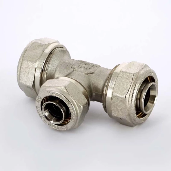 Монтаж обжимных фитингов следует производить в соответствии с требованиями СП 40-102-2000;СП 41-102-98; СП 40-103-98 и СНиП 3.05.01-85.При монтаже системы следует придерживаться следующего порядка:• отрезать металлопластиковую трубу нужной длины, строго перпендикулярно оси трубы;• подготовить трубу к монтажу фитинга (откалибровать трубу и снять внутреннюю фаску);• одеть на трубу гайку и обжимное кольцо (цангу);• вставить до упора штуцер фитинга в трубу, не повредив уплотнительных колец;• пододвинуть к корпусу фитинга обжимное кольцо;• накрутить от руки гайку на фитинг;• с помощью двух ключей соответствующего размера затянуть гайку на фитинге.Для качественного монтажа следует соблюдать следующие усилие затяжки ключами:• для фитингов d16 – 11/4 оборота гайки после затяжки от руки;• для фитингов d20-26 – 1 оборот гайки после затяжки от руки.
