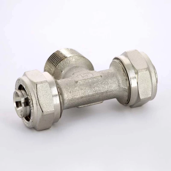 Монтаж обжимных фитингов следует производить в соответствии с требованиями СП 40-102-2000;СП 41-102-98; СП 40-103-98 и СНиП 3.05.01-85.При монтаже системы следует придерживаться следующего порядка:• отрезать металлопластиковую трубу нужной длины, строго перпендикулярно оси трубы;• подготовить трубу к монтажу фитинга (откалибровать трубу и снять внутреннюю фаску);• одеть на трубу гайку и обжимное кольцо (цангу);• вставить до упора штуцер фитинга в трубу, не повредив уплотнительных колец;• пододвинуть к корпусу фитинга обжимное кольцо;• накрутить от руки гайку на фитинг;• с помощью двух ключей соответствующего размера затянуть гайку на фитинге.Для качественного монтажа следует соблюдать следующие усилие затяжки ключами:• для фитингов d16 – 11/4 оборота гайки после затяжки от руки;• для фитингов d20-26 – 1 оборот гайки после затяжки от руки.