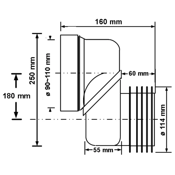 Труба фановая 160 мм, смещение 180 мм McALPINE MRWCLO-18