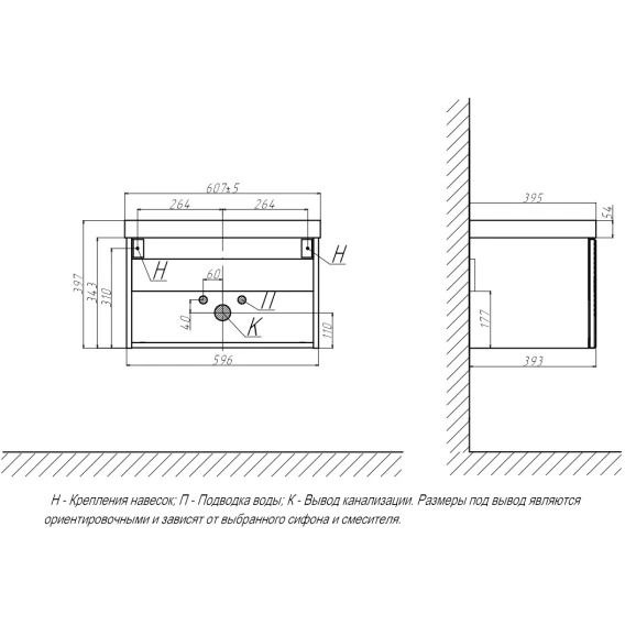 Тумба 59,6 см Velvex Edge tp.EDG.9696.60.1Y графит