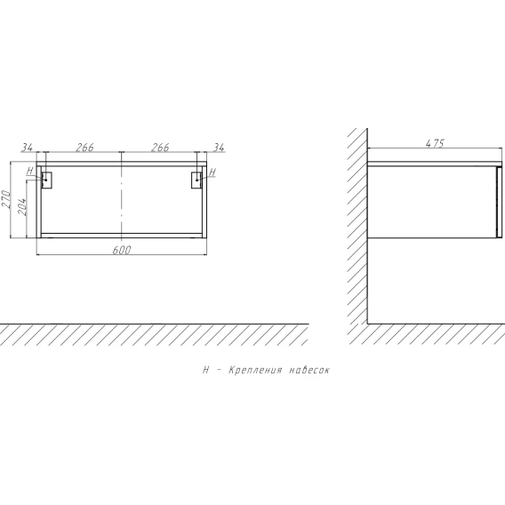 Тумба 60 см Velvex Unique Unit tp.UNI.60.1Y белый глянец