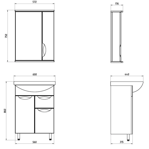 Комплект мебели белый 61 см ASB-Mebel Мессина