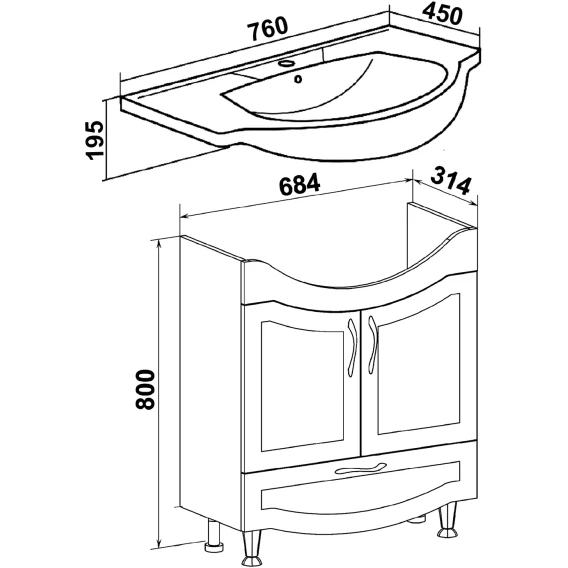 Тумба белый 68,4 см Runo Неаполь 00-00001034