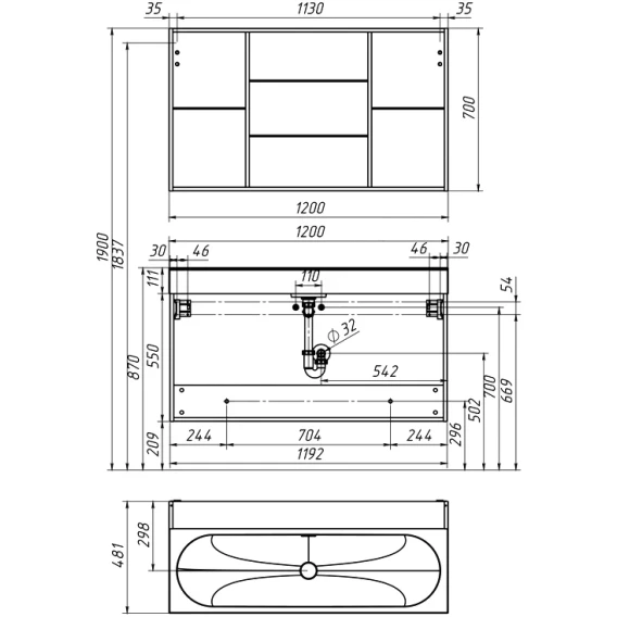Тумба белый глянец 119,2 см Belux Стокгольм НП 120-02 4810924275431