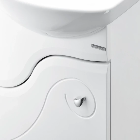 Изящная модель Изящество линий – вот, что отличает эту миниатюрную модель марки «АКВАТОН». Красивая фрезеровка на фасаде тумбы на регулируемых ножках, подчеркивает необычную форму царги. Тумбу дополняют легкое, воздушное зеркало и два варианта навесных шкафов: двухстворчатый и дностворчатый, украшенные фрезеровкой в таком же стиле. Тумба выпускается в белом и бело-рыжем исполнении.