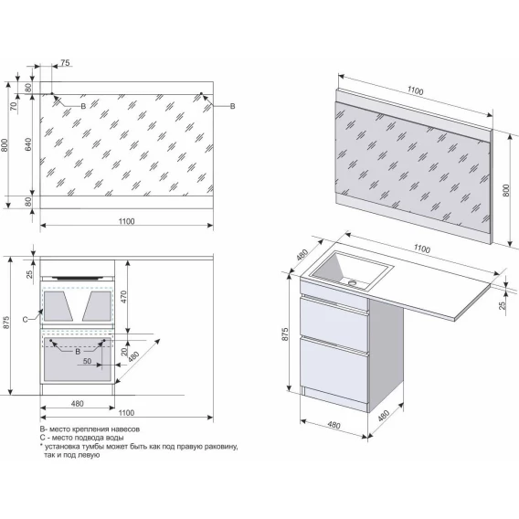 Тумба с раковиной белый глянец 110 см Style Line Даллас СС-00000438 + СС-00000439