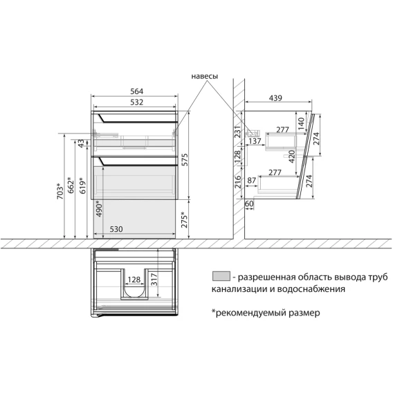 Комплект мебели серый 86 см ASB-Woodline Гранда