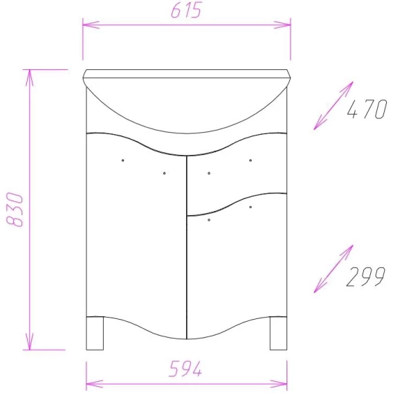 Тумба с раковиной белый глянец 61,5 см Onika Лайн 106044 + 4620008192772