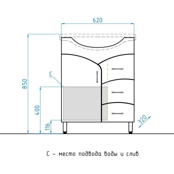 Тумба белый глянец 62 см Style Line Эко Стандарт ЛС-00000104