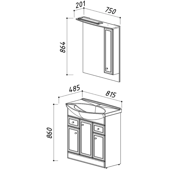 Тумба белый глянец 75,5 см Belux Адажио Н 80-02 4810924210289