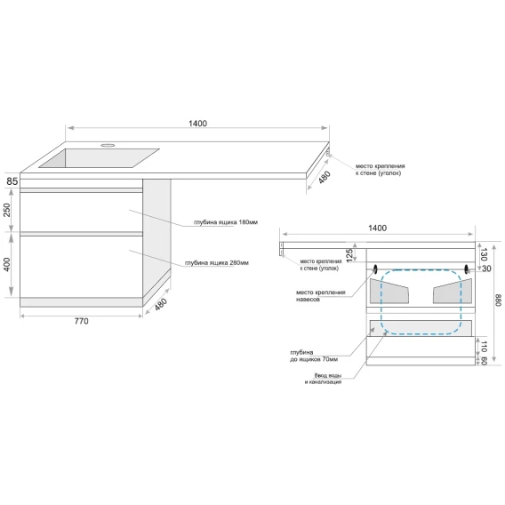 Тумба с раковиной белый глянец 140 см Style Line Даллас СС-00002273 + СС-00002220
