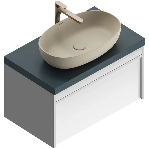 Мебель MODULA может быть использована для установки как мебельных раковин, так и любой из накладных, которые в этом случае устанавливаются на керамическую столешницу CANALETTO.  Помимо основного вместительного ящика тумба оснащена внутренним ящиком-органайзером.
