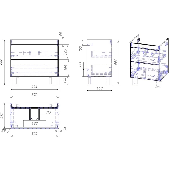 Тумба Grafito 77 см Cezares Duet DUET-800-2C-SO-GR-P