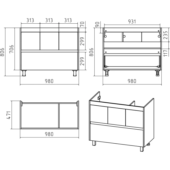 Крепление, Механизм доводчика, Ящик, Полочка, Ножки