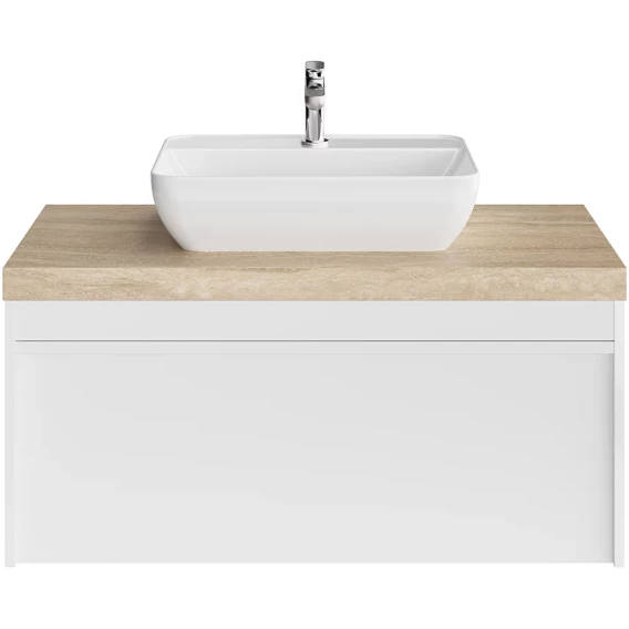 Мебель MODULA может быть использована для установки как мебельных раковин, так и любой из накладных, которые в этом случае устанавливаются на керамическую столешницу CANALETTO. Помимо основного вместительного ящика тумба оснащена внутренним ящиком-органайзером.