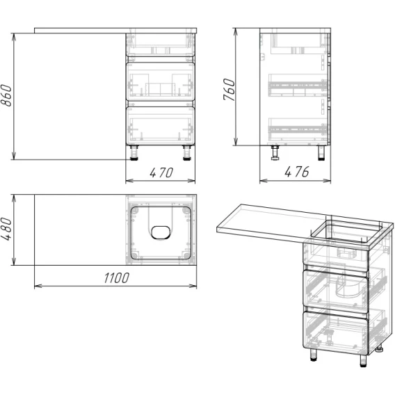 Механизм доводчика, Ящик, Ножки