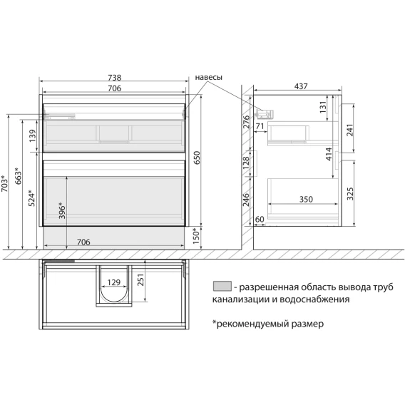 Тумба белый глянец/бетон 74,4 см Lemark Combi LM03C80T-Beton