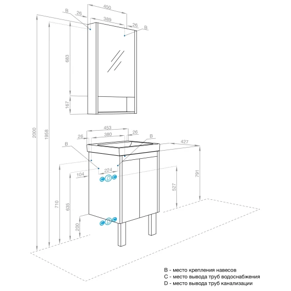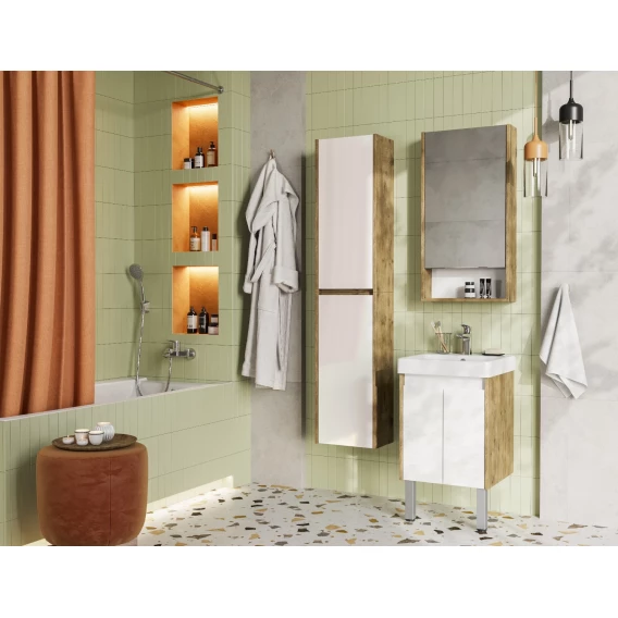 Тумба с раковиной белый глянец/дуб рустикальный 45 см Акватон Сканди Doors 1A2787K0SDZ90