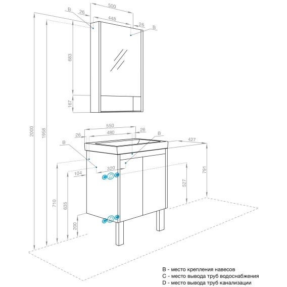 Тумба с раковиной белый глянец/дуб рустикальный 55 см Акватон Сканди Doors 1A2788K0SDZ90